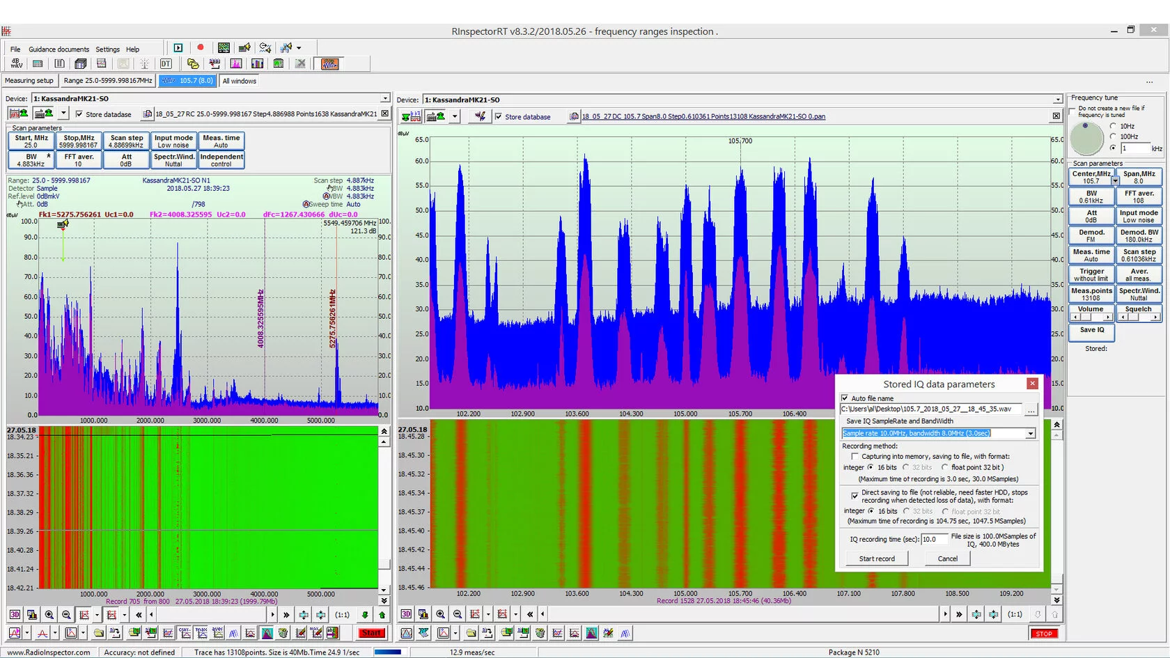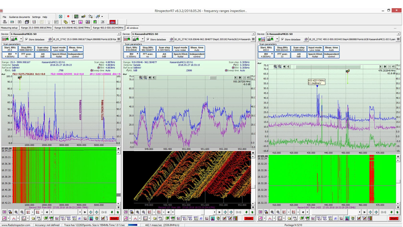 Chương trình Radio InspectorRC được sử dụng khi người vận hành cần giải quyết các vấn đề liên quan đến việc điều khiển một hoặc nhiều dải tần số. Nhiệm vụ điều khiển cho chương trình này được thiết lập như sau: cần quét một dải tần nhất định, được xác định bởi tần số quét đầu và cuối với một bước tần nhất định (độ phân giải). Để thực hiện quá trình quét này từ tần số bắt đầu đến tần số dừng, máy phân tích phổ có thể nhảy tần số nhiều lần. Trong một phép đo, máy phân tích phổ bao quát dải tần số ΔF=Bước*(N - 1), trong đó